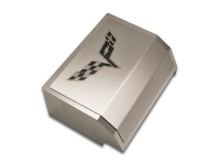 Dress up your Corvette with our Brushed/Polished Stainless Steel, Fuse Box Cover with C6 Logo Crossed Flags. These trim pieces are designed to fit all 2005-2013 Corvettes over the fuse box and add a clean stylish look to your Corvette engine bay.